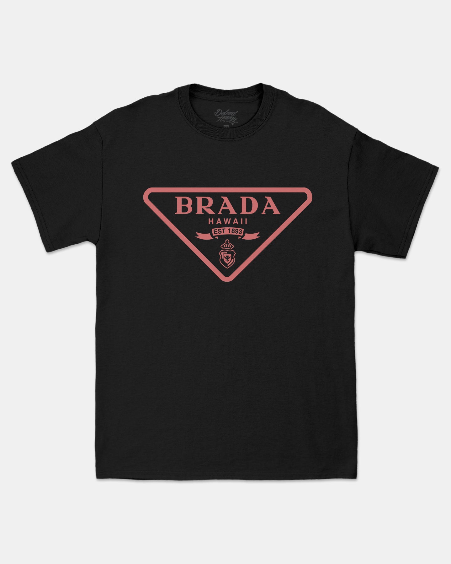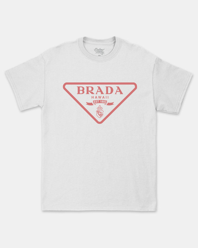 Defend Hawai'i - Step out with our newest luxury look. Another parody design in the books. Rep our newest Brada design straight across the chest in your favorite color way. This one comes in pink ink on a black, white, athletic heather, or light pink casual-fit tee.