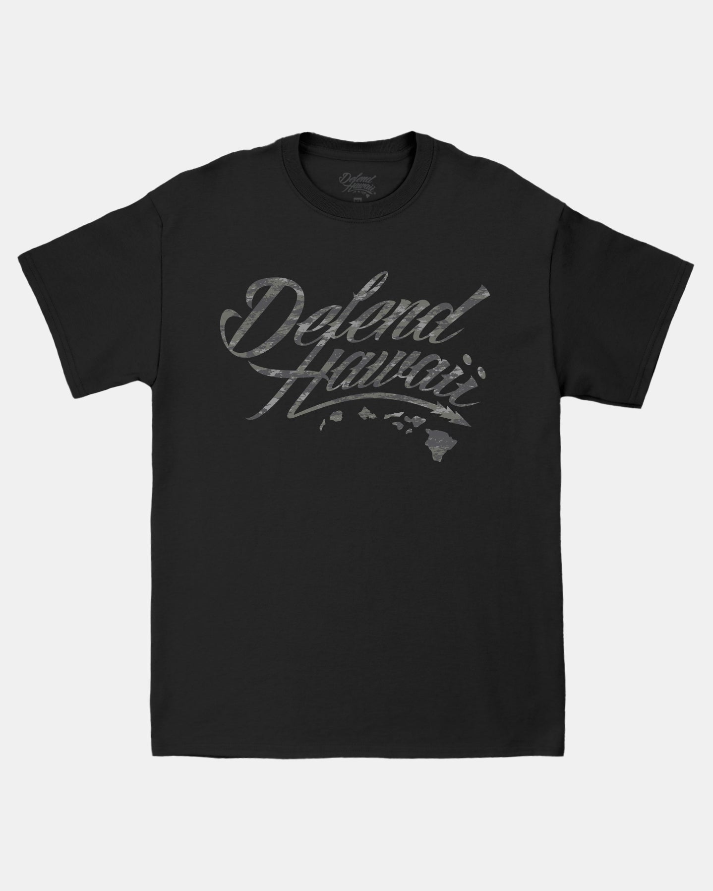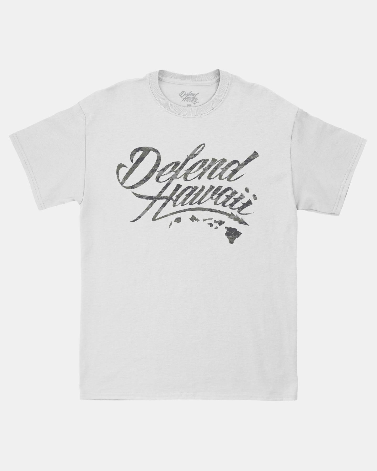 Defend Hawai'i - The iconic, never duplicated, stapled Wildstyle Rust logo. Featuring a mayjah front hit, with a perfect patina. This one comes in rust ink on a black or white casual fit t-shirt. Your everyday tee to DEFEND with.