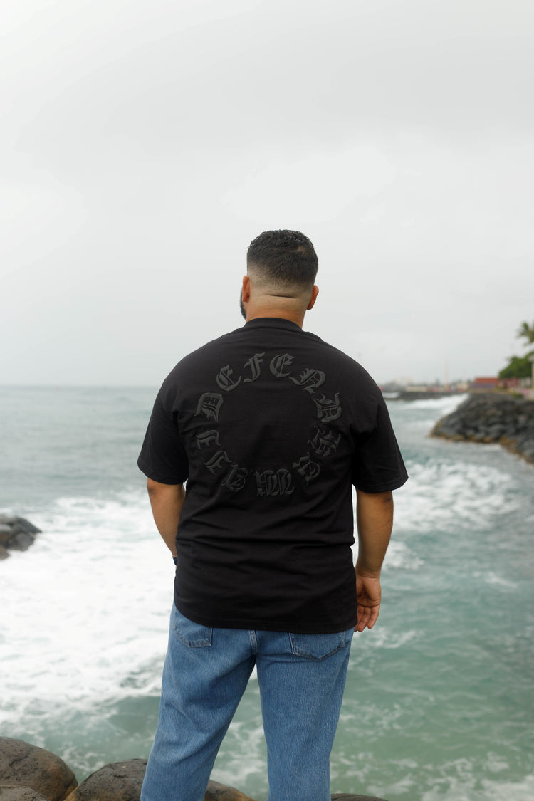 Defend Hawai'i - A little incognito but always on defense. This is Poai Bevel. Featuring a never ending pocket and pack hit in a monochromatic puff print. Pick your favorite color way. This one comes in black on black premium-fit tee.