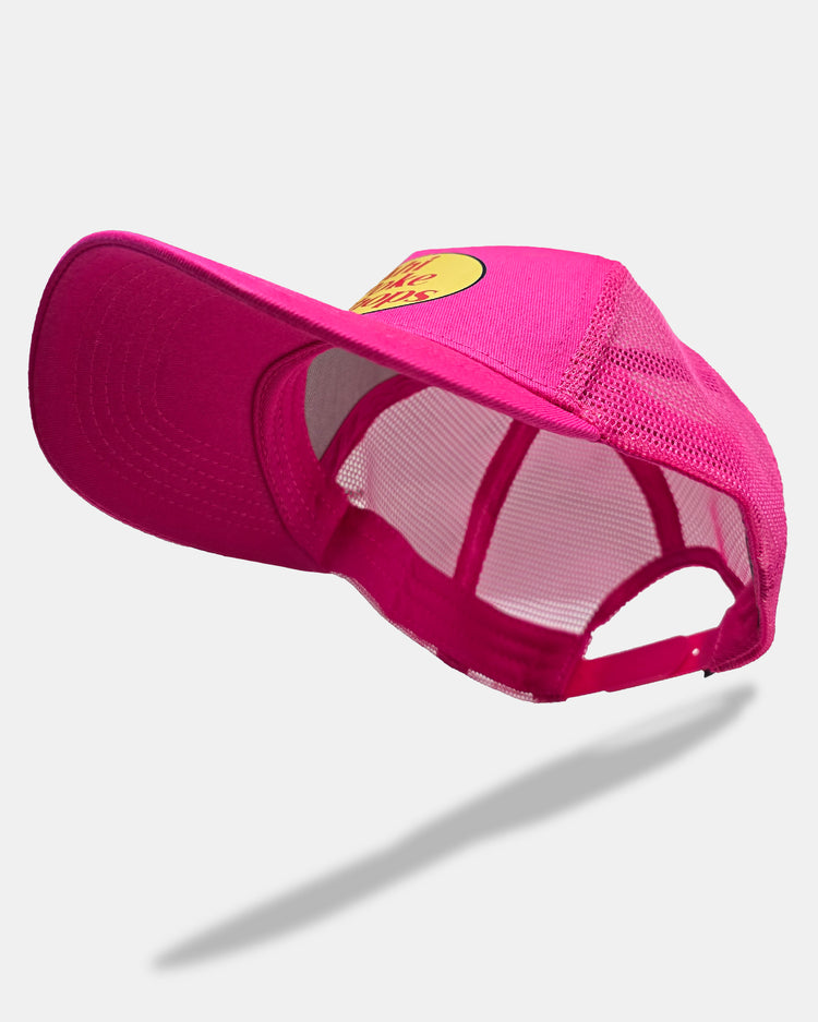 Defend Hawai'i creates THE must have parody design. This Ahi Poke Shops a-frame five-panel snapback. Clearly a local twist of another trendy hat, if you know you know. This one is a full cotton casual fit pink meshback trucker hat with a snap closure.