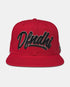 Defend Hawai'i - Our newest hat design, for all da defenders. A Bold Script Defend Hawaii logo embroidered in black on a red crown hat. A hae Hawai'i (Hawaiian flag) patch embroidered on it's side. This one is a cotton camo snapback hat, with a red crown, red eyelets, gray underbrim, and button with a snap closure.