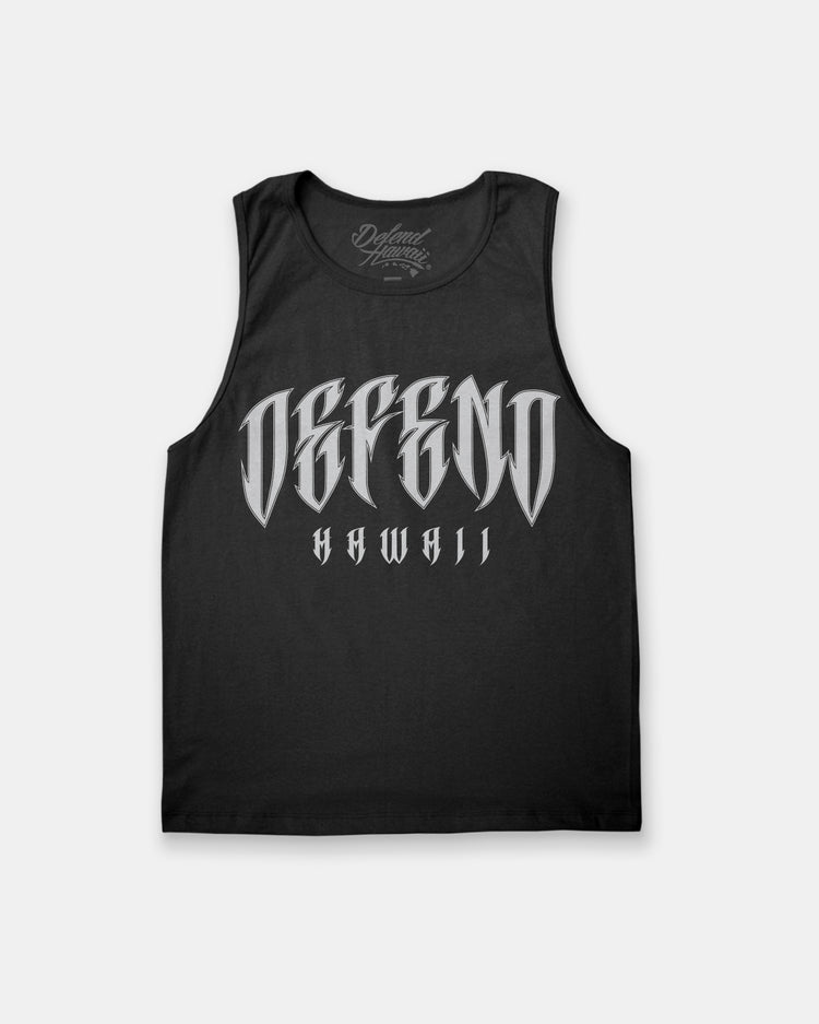 Defend Hawai'i - Watch your fingers, this is Sharp. A clean tee with a sharp font. Featuring a chest hit, this time for da keiki. Pick your favorite color way. This one comes in gray ink on a black casual fit youth tank top.