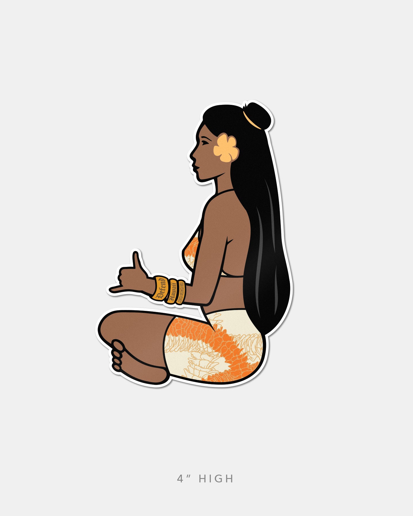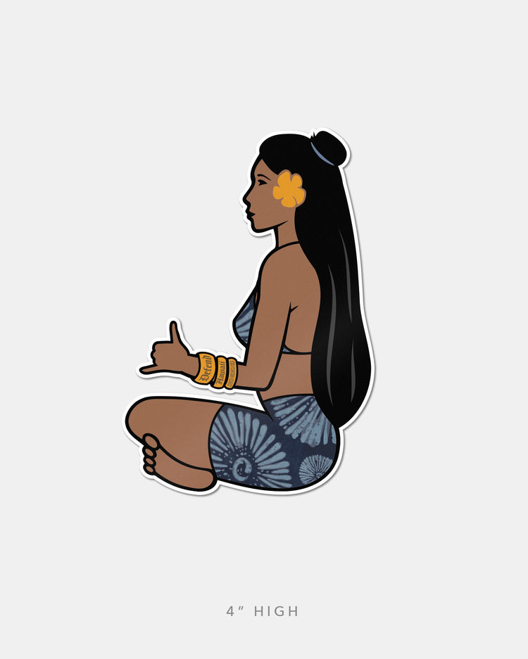 Defend Hawai'i custom die-cut stickers. Collect um, share um, slap um! Cheee! This one is our popular Ku'uipo design with a few different outfit changes! You'll probably just want this for everything.
