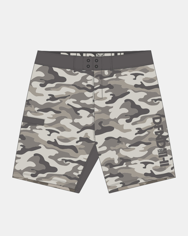 Defend Hawai'i - Introducing our Active Dunes Camo boardshort design. Stay incognito while defending. The usual woven label in the back for hang drying!