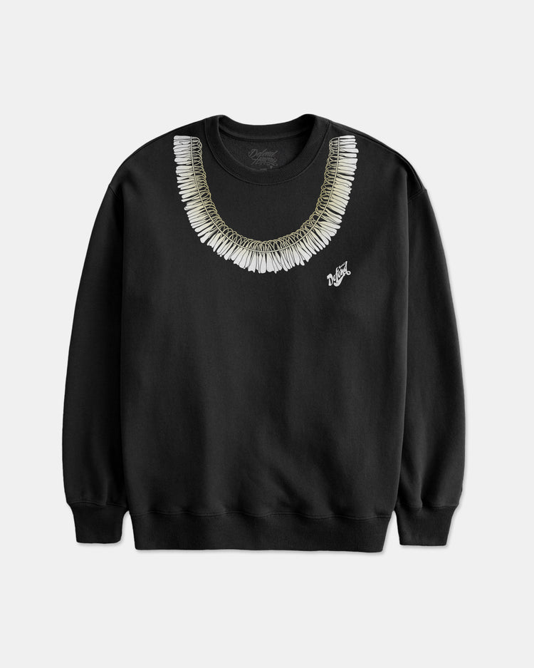 Defend Hawai'i - Wear your lei all day with our Ginger Lei design, it always stays fresh. This one comes with freshly picked green and cream ginger ink printed on a black crewneck sweater. Your everyday tee to DEFEND with.