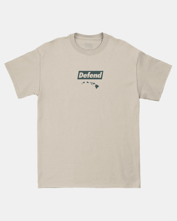 Defend Hawai'i - Hiding in plain Kalo sight, this is Kaloflage. Featuring a simple center and flourishing back hit. Pick your favorite color way. This one comes in green and gray ink on a white or tan casual fit tee.