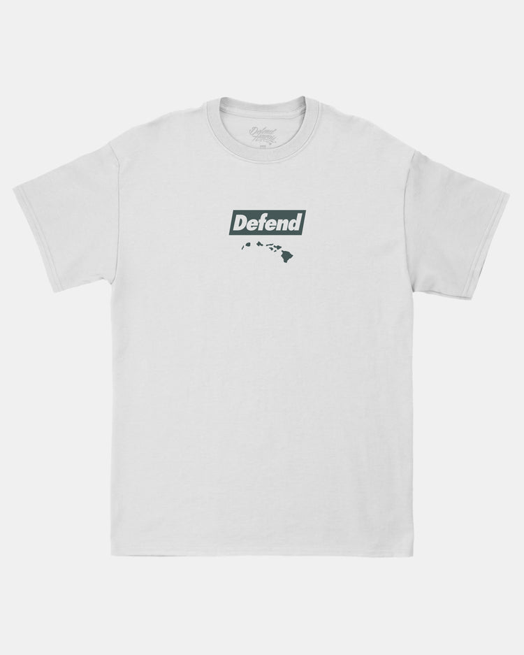 Defend Hawai'i - Hiding in plain Kalo sight, this is Kaloflage. Featuring a simple center and flourishing back hit. Pick your favorite color way. This one comes in green and gray ink on a white or tan casual fit tee.