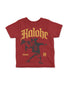 Defend Hawai'i - The're wild but we love them, this is Kalohe for da keiki. Pick your favorite color way, this one comes in gold and charcoal ink design on a red or gray casual-fit kids tee.