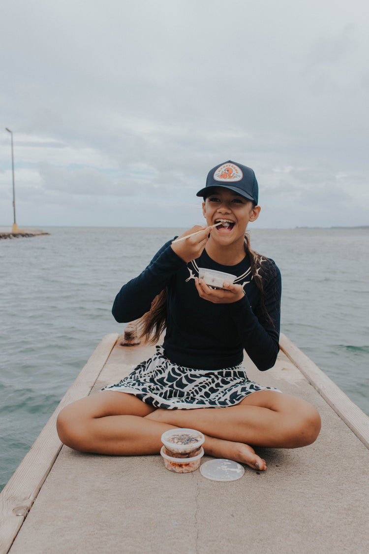 Defend Hawai'i - Introducing our highly anticipated collab with an Eastside staple, KBayBros. IYKYK... You'll want this one by the pound. One of our most popular products and an easy gift for anyone, a Defend Hawai'i lanyard, this one features both iconic logo designs and a tasty tako. Get this in white, red, and yellow on a black background.