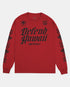 Defend Hawai'i - Back with an all over design, this is Ohana Everywhere. Featuring a full chest hit and matching logos down each sleeve. This one comes in red on black, black on red, or black on white casual-fit longsleeves.