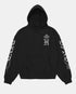 Defend Hawai'i - A new rendition for our royalty collection, this is our H Spear Crowned design. Featuring our standard pocket hit, paired with a long spine hit, and double sleeve hits. Pick your favorite color way. This one comes in white on black midweight fleece pullover hoodie.