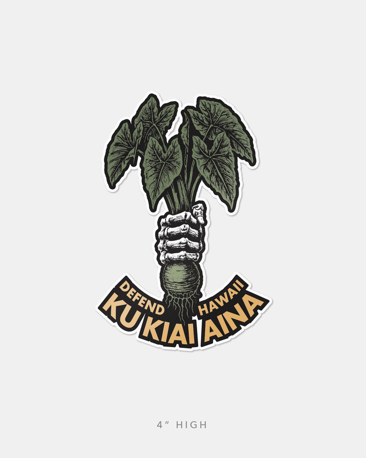 Defend Hawai'i custom die-cut stickers. Collect um, share um, slap um! Cheee! This one is our popular Ku Kia'i Aina in white, yellow, and green ink design! You'll probably just want this for everything.