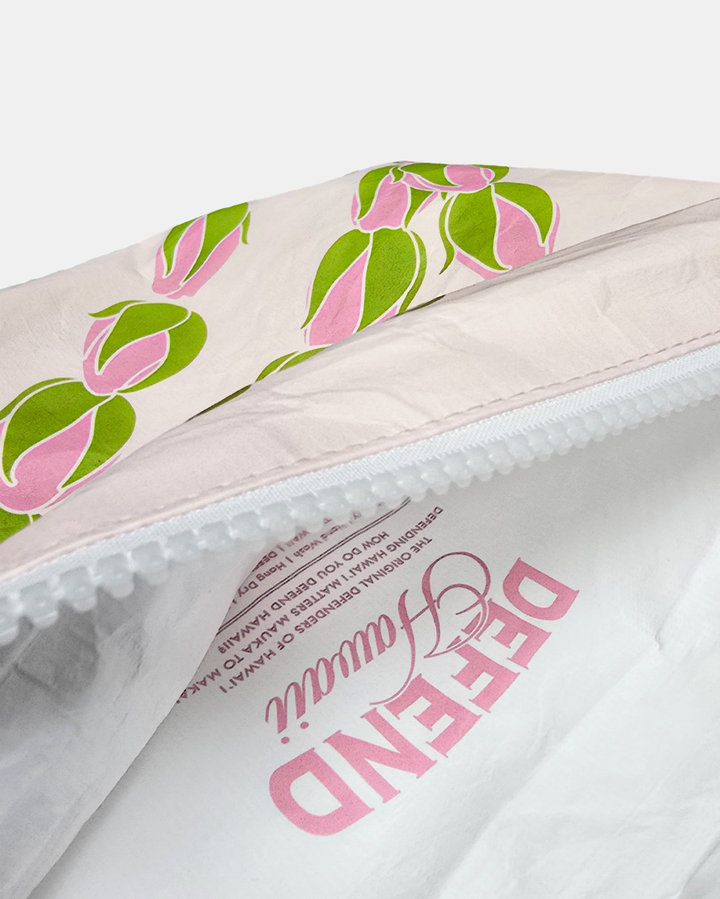 Defend Hawai‘i - Introducing our newest line of Tyvek bags. Featuring our delicate Lokelani Lei design, fresh pink and green floral on a light pink background. Pick your ideal size-available in a small or medium pouch. Built to hold your daily essentials or pack it full for your travels. Full of pride in a toned down red, white, and blue hae. The double-lined Tyvek built for durability, featuring a premium plastic zipper for a seamless closure. Designed for for every activity, to the beach, on the hike, to work, on a vacation...SHE GO!